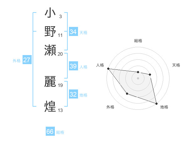 小野瀬 麗煌さんの総格は66画の1点