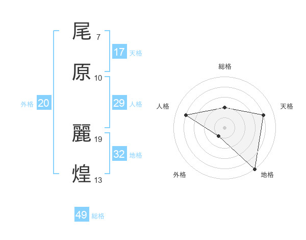 尾原 麗煌さんの総格は49画の2点!