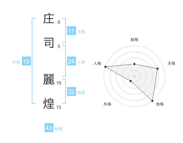 庄司 麗煌さんの総格は43画の2点!