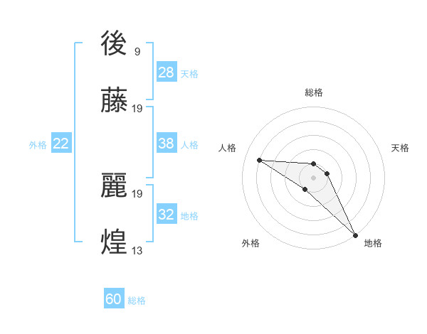 後藤 麗煌さんを姓名の画数から五運を鑑定