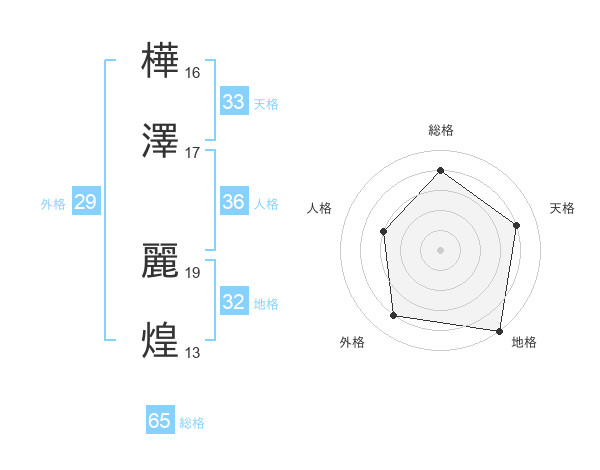 樺澤 麗煌さんを姓名の画数から五運を鑑定