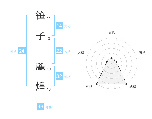 笹子 麗煌さんの総格は46画の1点!