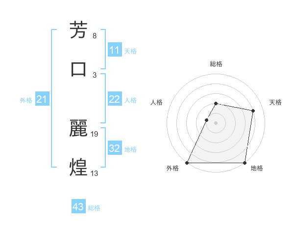 芳口 麗煌さんを姓名の画数から五運を鑑定