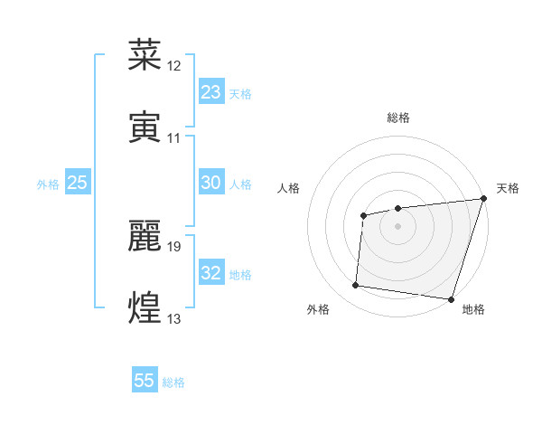 菜寅 麗煌さんの総格は55画の1点!