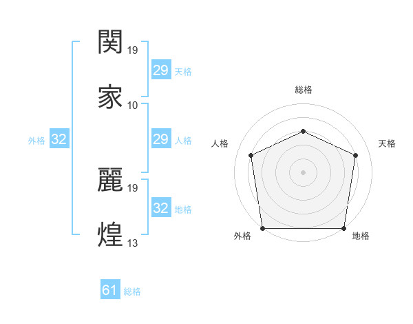 関家 麗煌さんを姓名の画数から五運を鑑定