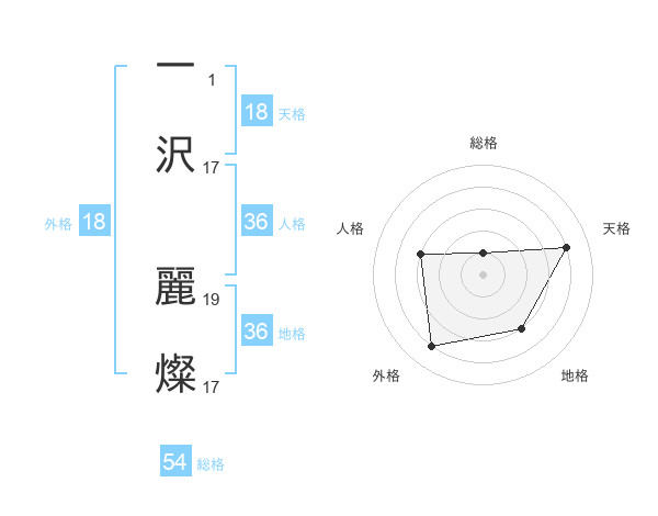 一沢 麗燦さんを姓名の画数から五運を鑑定