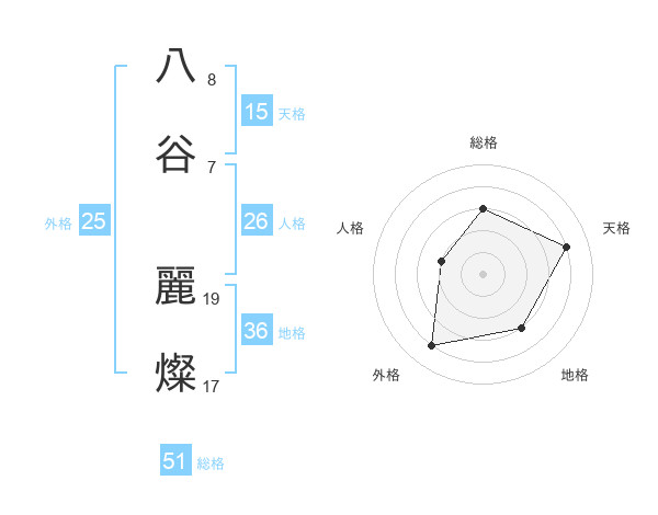 八谷 麗燦さんを姓名の画数から五運を鑑定