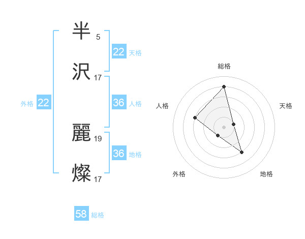 半沢 麗燦さんの総格は58画の4点!