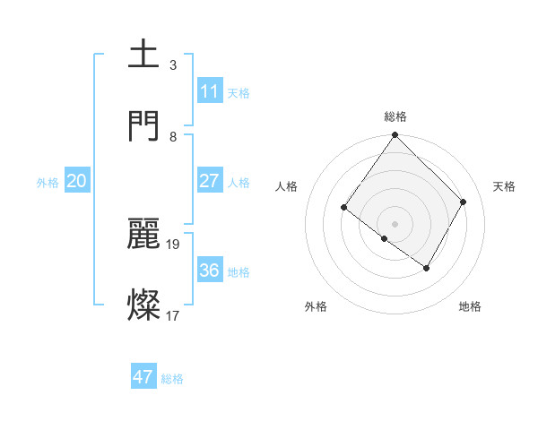土門 麗燦さんを姓名の画数から五運を鑑定