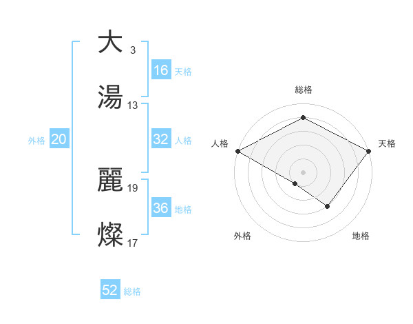 大湯 麗燦さんの総格は52画の4点!