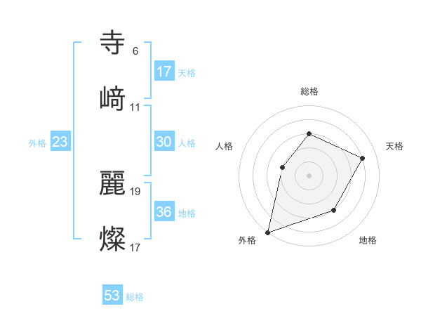 寺﨑 麗燦さんの総格は53画の3点!
