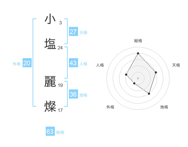 小塩 麗燦さんを姓名の画数から五運を鑑定