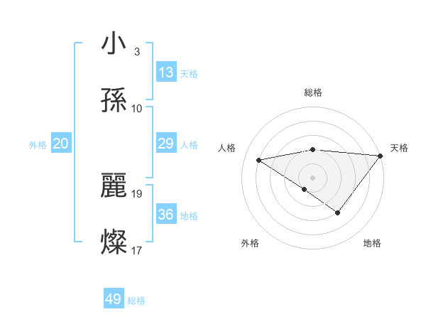小孫 麗燦さんの天格は13画の5点!
