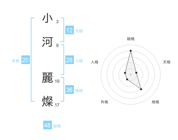 小河 麗燦さんを姓名の画数から五運を鑑定