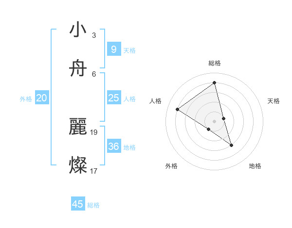 小舟 麗燦さんの総格は45画の4点!
