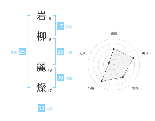 岩柳 麗燦さんの総格は53画の3点!