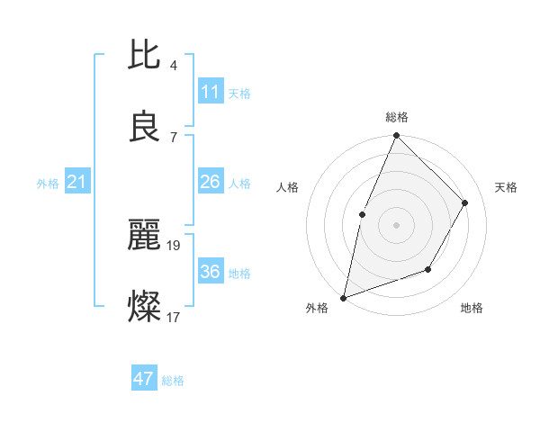 比良 麗燦さんの総格は47画の5点!