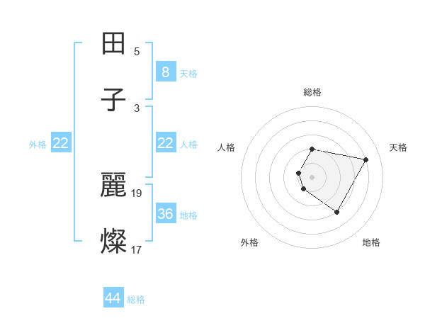 田子 麗燦さんを姓名の画数から五運を鑑定