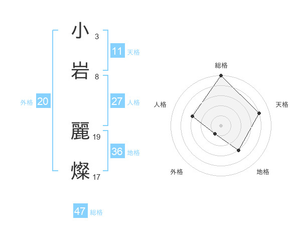 小岩 麗燦さんの総格は47画の5点!