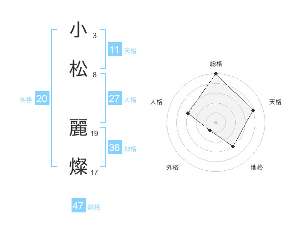 小松 麗燦さんを姓名の画数から五運を鑑定