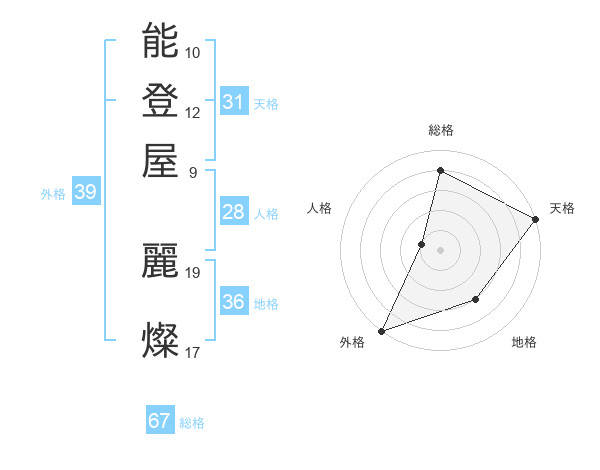 能登屋 麗燦さんを姓名の画数から五運を鑑定