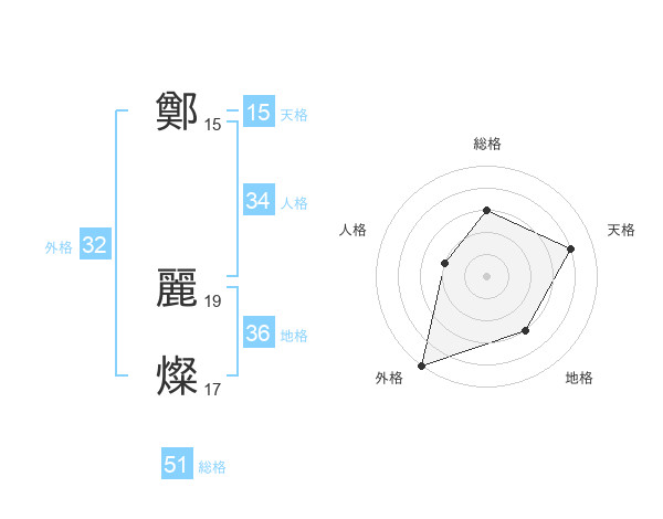 鄭 麗燦さんの総格は51画の3点!