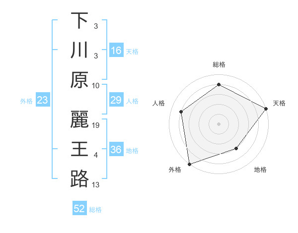下川原 麗王路さんの総格は52画の4点!