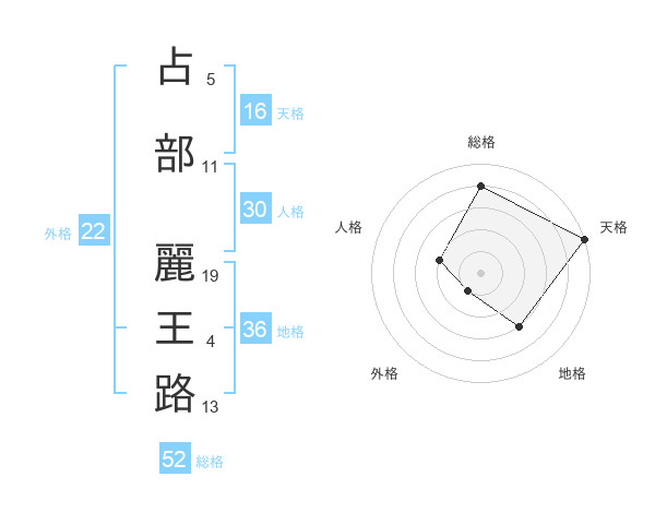 占部 麗王路さんを姓名の画数から五運を鑑定