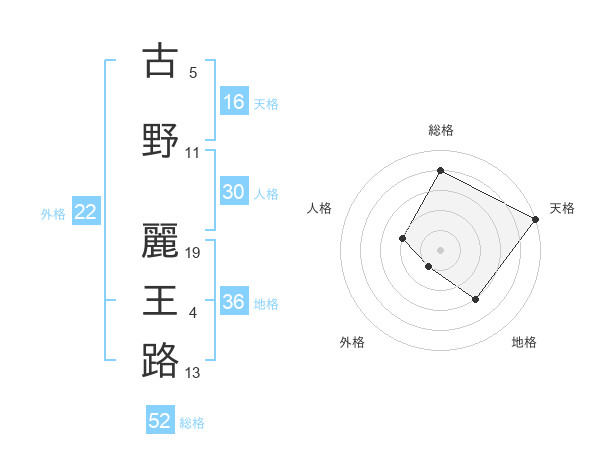 古野 麗王路さんを姓名の画数から五運を鑑定