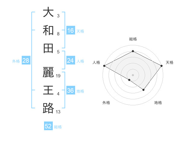 大和田 麗王路さんを姓名の画数から五運を鑑定