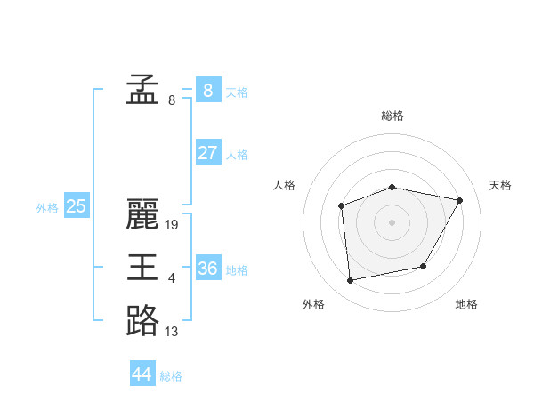 孟 麗王路さんの総格は44画の2点!