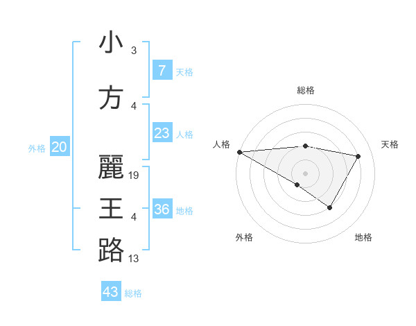 小方 麗王路さんの総格は43画の2点!