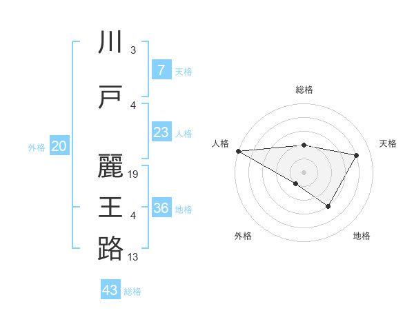 川戸 麗王路さんを姓名の画数から五運を鑑定