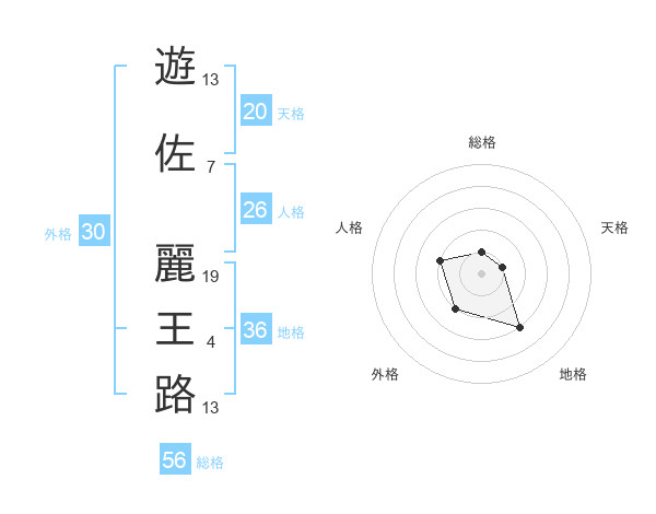 遊佐 麗王路さんの総格は56画の1点!