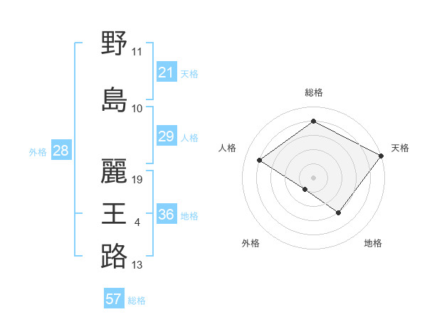 野島 麗王路さんを姓名の画数から五運を鑑定