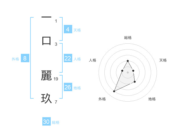 一口 麗玖さんの総格は30画の2点!