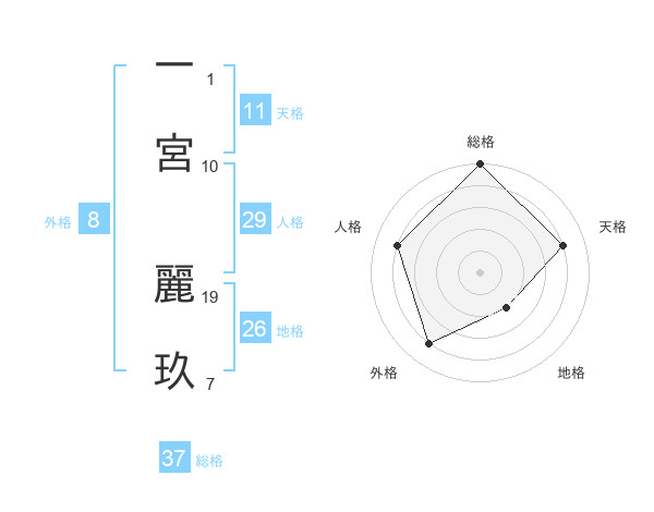 一宮 麗玖さんの総格は37画の5点!