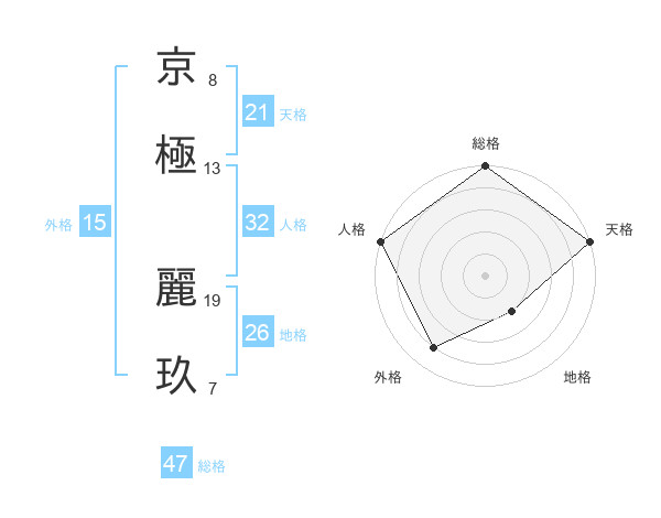 京極 麗玖さんの総格は47画の5点!