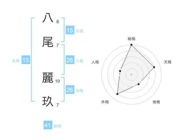 八尾 麗玖さんの総格は41画の5点!
