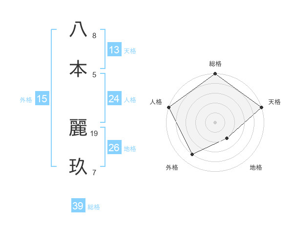 八本 麗玖さんの総格は39画の5点!