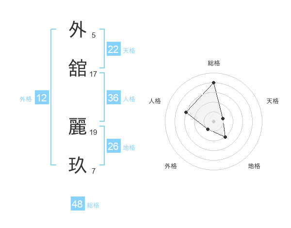 外舘 麗玖さんを姓名の画数から五運を鑑定