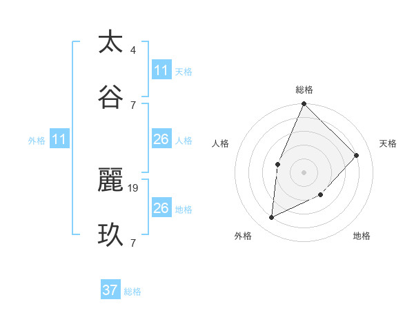 太谷 麗玖さんの天格は11画の4点!