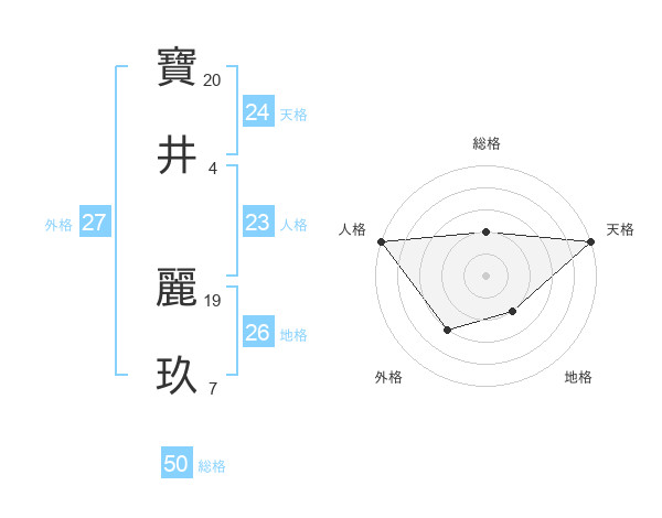 寶井 麗玖さんの天格は24画の5点!
