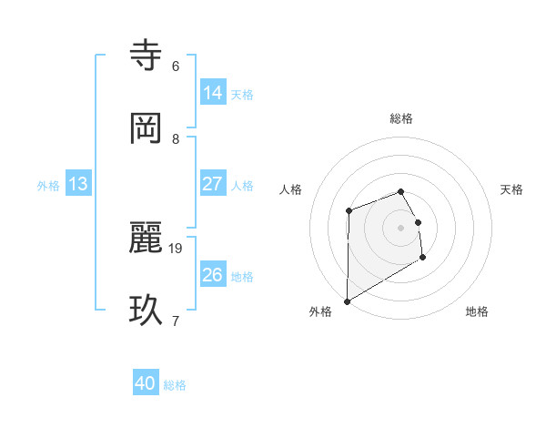 寺岡 麗玖さんの外格は13画の5点!