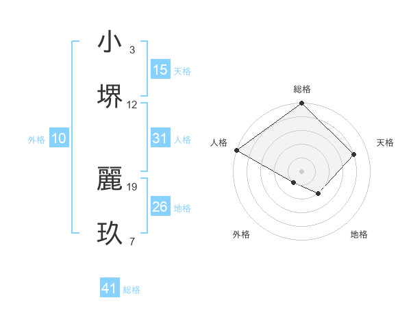 小堺 麗玖さんの総格は41画の5点!