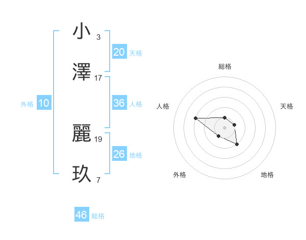 小澤 麗玖さんの総格は46画の1点!