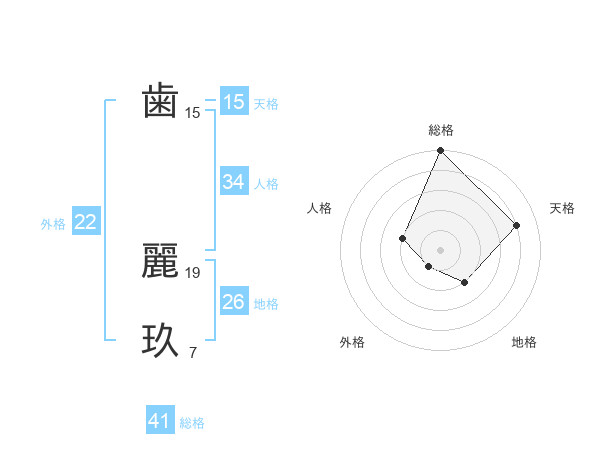 歯 麗玖さんを姓名の画数から五運を鑑定