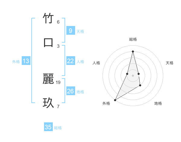 竹口 麗玖さんを姓名の画数から五運を鑑定