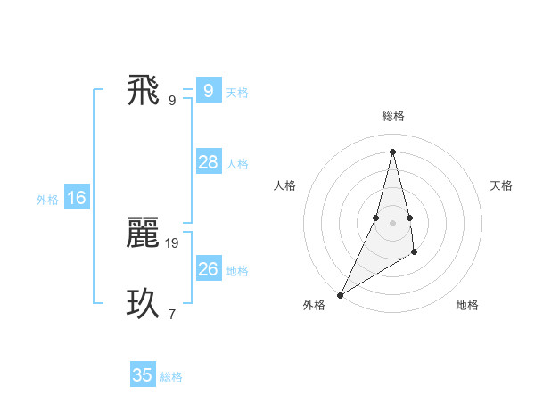 飛 麗玖さんの総格は35画の4点!