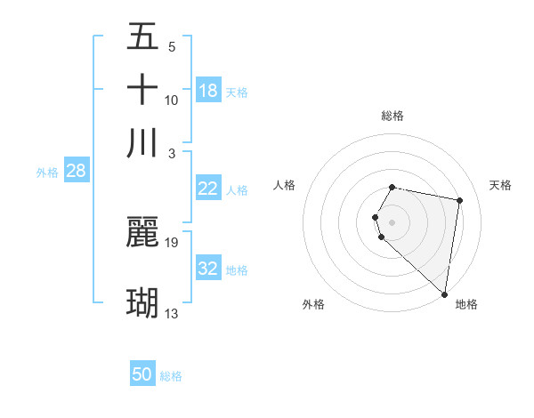 五十川 麗瑚さんを姓名の画数から五運を鑑定